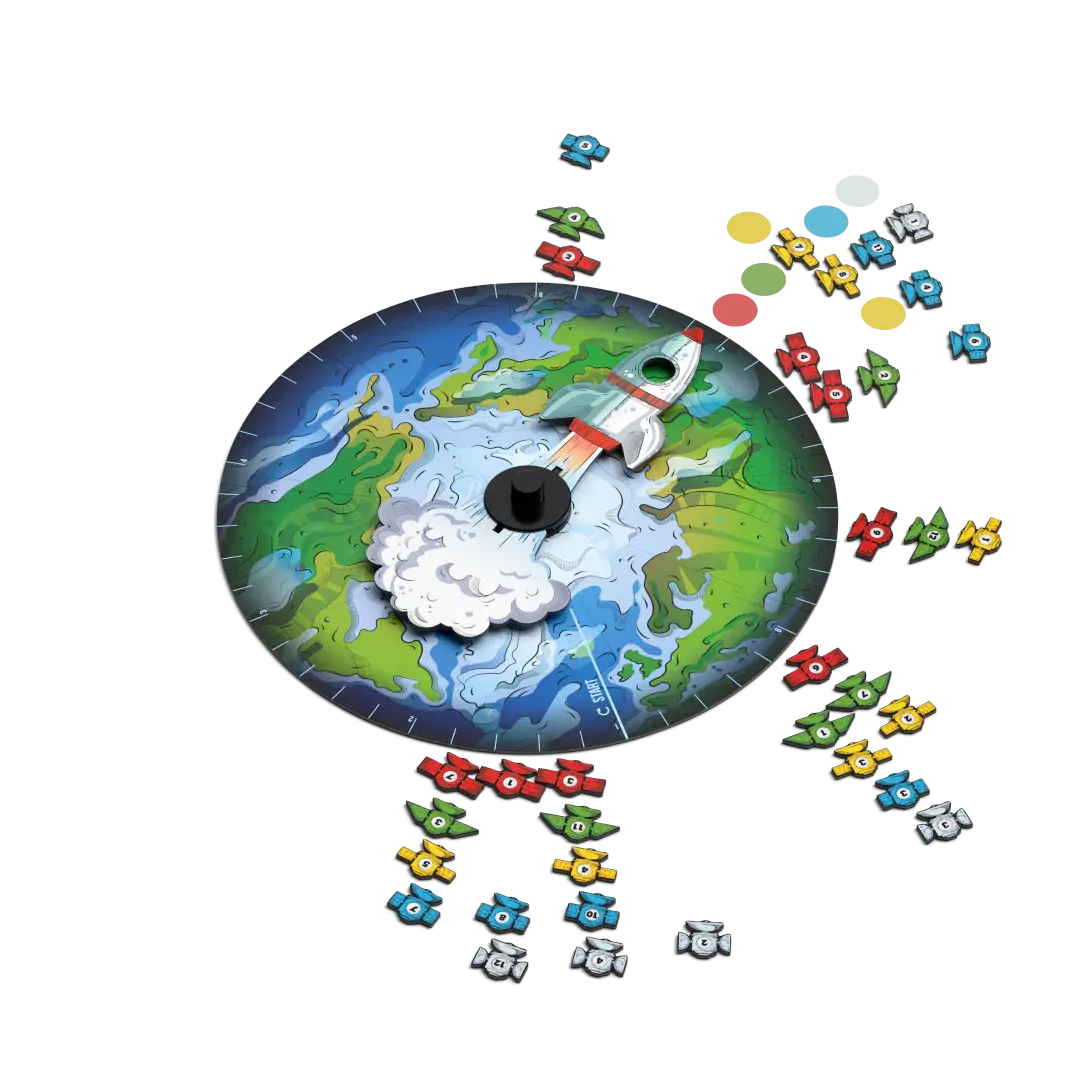 Estás lanzando satélites GPS al espacio. Deben orbitar la Tierra en el orden correcto. Pero tus ventanas de lanzamiento son limitadas. Solo puedes lanzar satélites hacia donde apunta la ruleta en cada turno. Tu trabajo es elegir el mejor satélite para cada lanzamiento para que tus satélites se posicionen antes que tus oponentes.