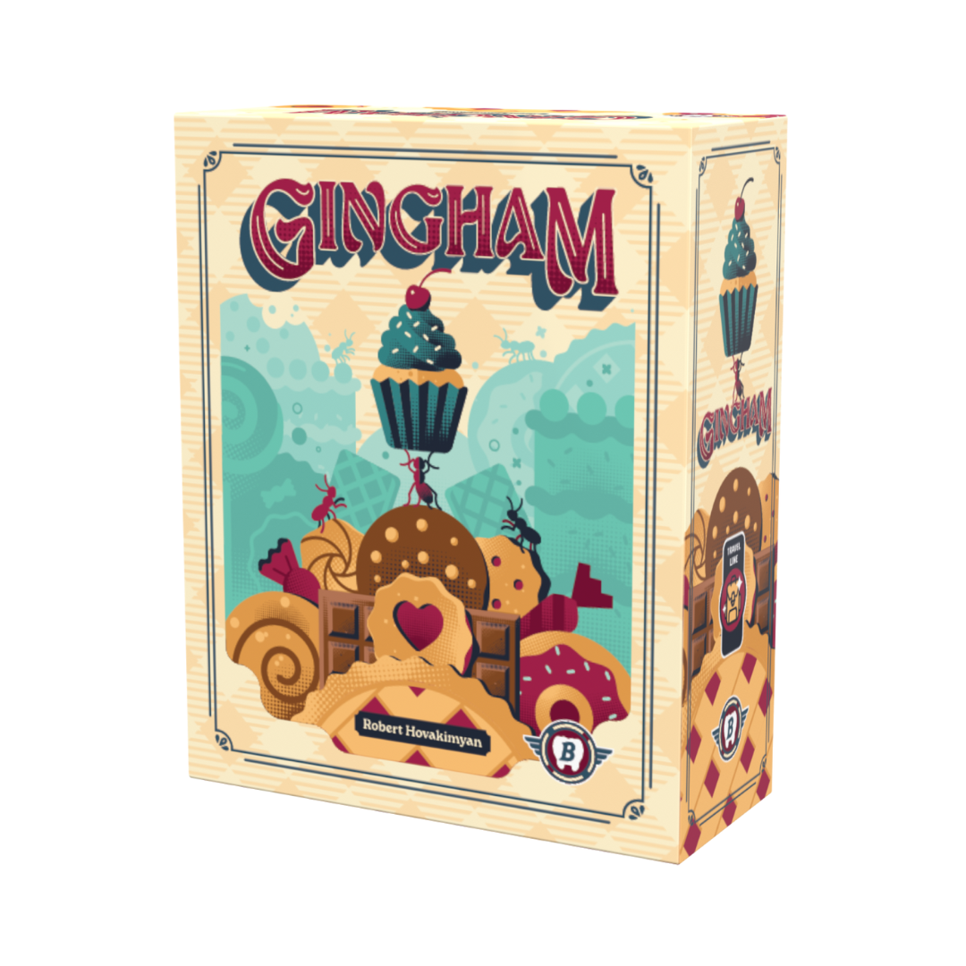 Gingham (diseñado por Bitewing Games) es un juego de mesa abstracto y de estrategia para 2-4 jugadores, caracterizado por su alta interacción y temática de hormigas robando dulces. Los jugadores colocan hormigas para conectar golosinas en un mantel, creando secuencias y moviendo pilas de dulces para puntuar, todo en partidas rápidas de 20-40 minutos.