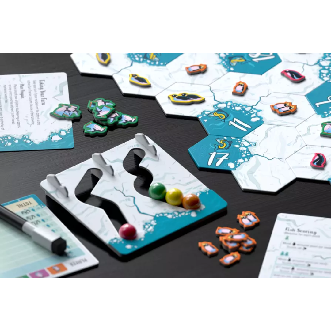 Componentes: Incluye tableros de hexágonos de hielo y fichas de pingüinos.